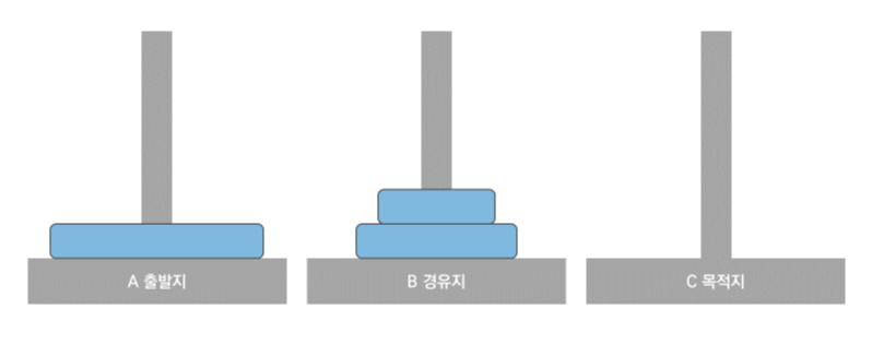 3. 그 후 맨 아래에 있던 원판을 C로 이동시킨다. (1번 동작)